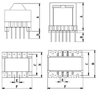 | HH-EER25.5 | 8 | 19.5 | 19.7 | 12.5 | 4 | 5 | 25.5 | V |
